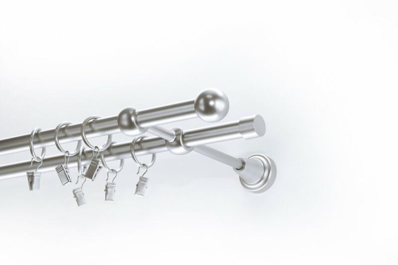 A szett tartalma: - 2 db nikkel-matt színű 16 mm Ø rúd a választott méretben - 2 db nikkel-matt Los Angeles végzáró (4 cm) - 2 db nikkel- matt Kansas végzáró (2 cm)- a hátsó rúdra - 2 db dupla nikkel-matt block tartó (8/14 cm) - nikkel-matt karikák ráncszedőkampóval (rudanként, 10 cm-ként 1 db) - a szereléshez szükséges csavarok és tiplik 240 cm karnishossz felett 3 db ta