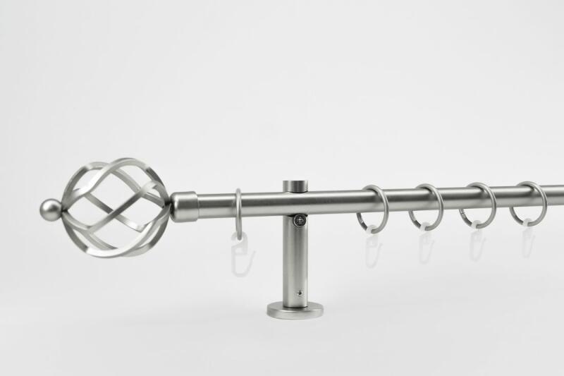 Krómozott galéria szett, a csövek átmérője 25/19. PVC gyűrűk és kapcsok. A 300 cm-nél nagyobb méreteknél középen egy kötés található. A galériához minden felszereléshez szükséges tartozék tartozik. A kiválasztott méret nem tartalmazza a díszfejek hosszát. Díszes vége hossza 7 cm.