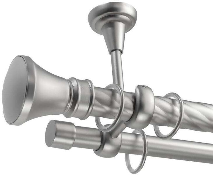 A szett tartalma: - 2 db nikkel-matt színű 16 mm Ø rúd a választott méretben - 2 db nikkel-matt Washington végzáró (10 cm) - 2 db nikkel- matt Kansas végzáró (2 cm)- a hátsó rúdra - 2 db dupla nikkel-matt lapostartó (8,5/14,5 cm) - nikkel-matt karikák ráncszedőkampóval (rudanként, 10 cm-ként 1 db) - a szereléshez szükséges csavarok és tiplik 240 cm karnishossz felett 3 db