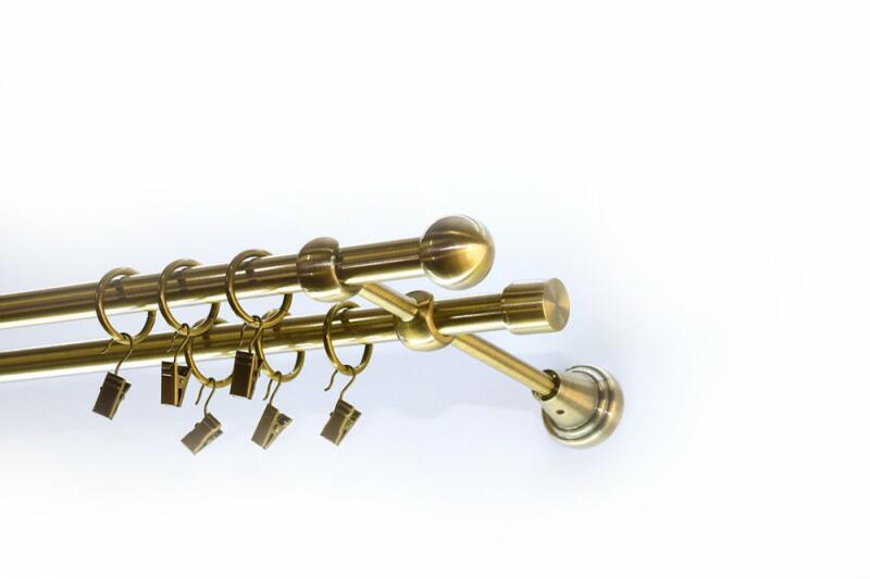 A szett tartalma: - 2 db óarany színű 16 mm Ø rúd a választott méretben - 2 db óarany Kansas végzáró (2 cm) - 2 db óarany Kansas végzáró (2 cm)- a hátsó rúdra - 2 db dupla óarany block tartó (8/14 cm) - óarany karikák és ráncszedő kampók (rudanként, 10 cm-ként 1 db) - a szereléshez szükséges csavarok és tiplik 240 cm karnishossz felett 3 db tartót tartalmaz a csoma