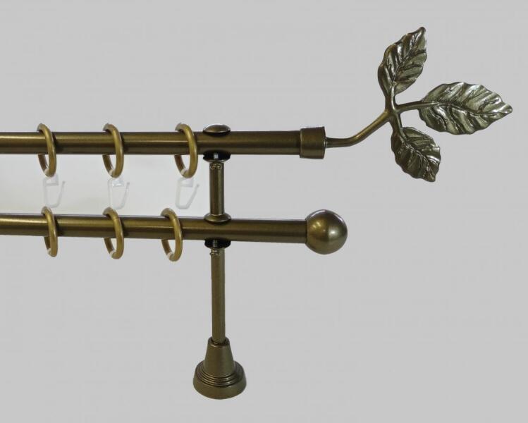 A szett tartalma: - 2 db óarany színű 19 mm Ø rúd a választott méretben - 2 db óarany Belgrad végzáró (7 cm) - 2 db óarany Köln végzáró (2 cm)- a hátsó rúdra - 2 db dupla óarany nyitott tartó (11/17 cm) - óarany karikák ráncszedőkampóval (rudanként, 10 cm-ként 1 db) - a szereléshez szükséges csavarok és tiplik 240 cm karnishossz felett 3 db tartót tartalmaz a csoma