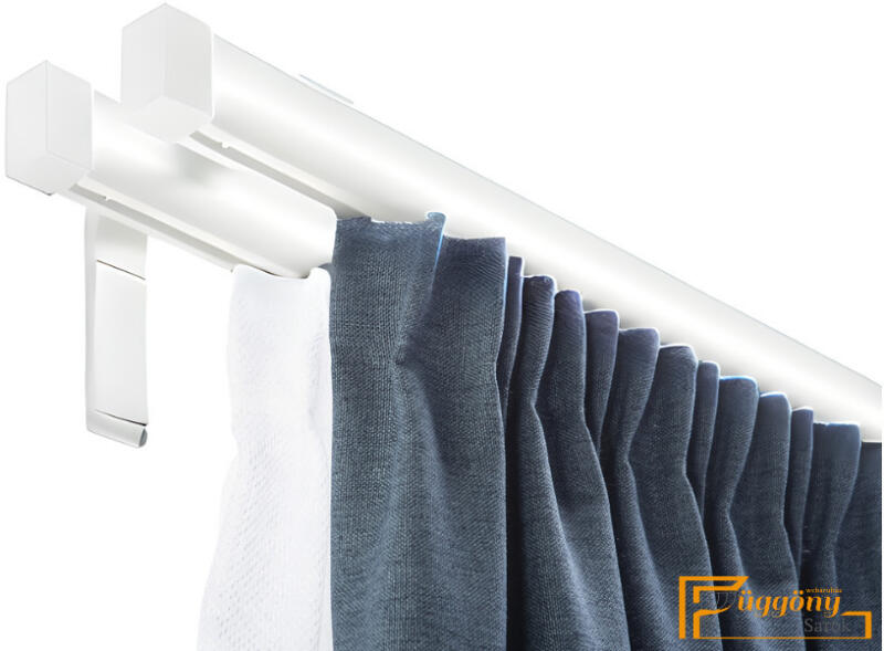 Alumínium ívelt előlapos mennyezeti sín, 2 soros, tartozékcsomaggal, MATT- FEHÉR A szett tartalmaz: - 1 db alumínium, 2 soros ívelt előlapos mennyezeti sínt (a választott méretben) - A szereléshez szükséges csavarokat és tipliket - A sín hosszúságához mérten (soronként, 10 cm-ként 1 db) függönycsúszkát - 1 pár végzárót A sín méreteit a termékoldalra feltöltött k