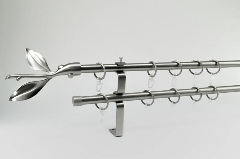 A szett tartalma: - 2 db nikkel-matt színű 16 mm Ø rúd a választott méretben - 2 db nikkel-matt Boston végzáró (5 cm) - 2 db nikkel- matt Kansas végzáró (2 cm)- a hátsó rúdra - 2 db dupla nikkel-matt block tartó (8/14 cm) - nikkel-matt karikák ráncszedőkampóval (rudanként, 10 cm-ként 1 db) - a szereléshez szükséges csavarok és tiplik 240 cm karnishossz felett 3 db tartót
