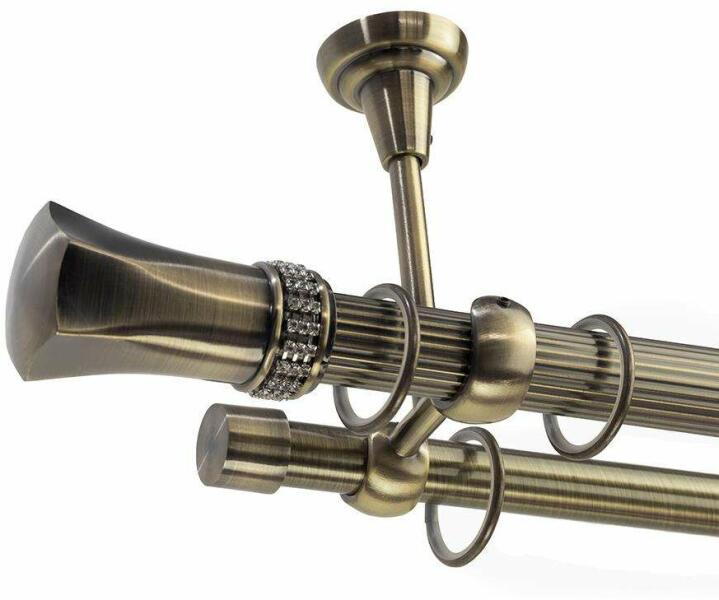 Kétsoros fém függönykarnis szett antik arany színben. Vásárlás előtt kérem, figyelemmel olvassa el a szállítási opciókat! A fém végzáró elem mérete: 11 x 4,5 cm. A fém karnis rúd átmérője: 16 mm. A fém karnis rúd hosszát Ön tudja ki választani ami 120 cm-300 cm között lehet. Ebben segítségére lehet a lent található karnist szett paraméterei táblázat. A Linea