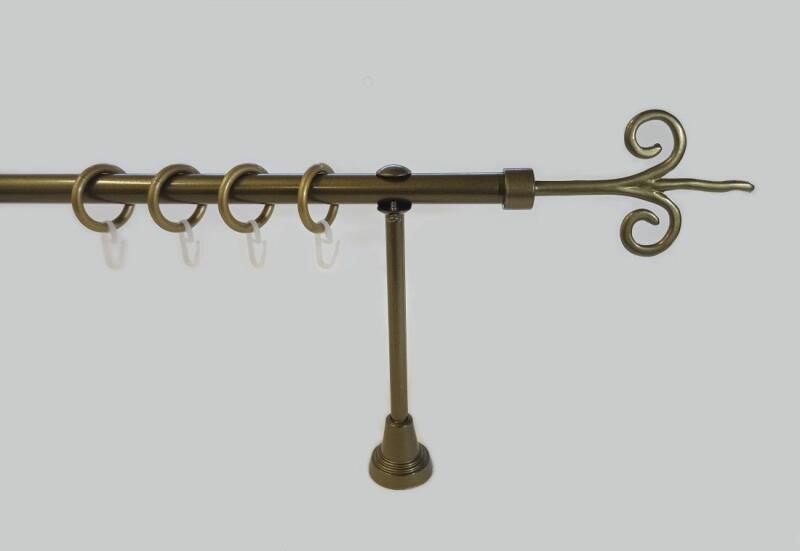 A szett tartalma: - 2 db óarany színű 16 mm Ø rúd a választott méretben - 2 db óarany Leeds végzáró (5,5 cm) - 2 db óarany Kansas végzáró (2 cm)- a hátsó rúdra - 2 db dupla óarany lapostartó (8,5/14,5 cm) - óarany karikák és ráncszedő kampók (rudanként, 10 cm-ként 1 db) - a szereléshez szükséges csavarok és tiplik 240 cm karnishossz felett 3 db tartót tartalmaz a c