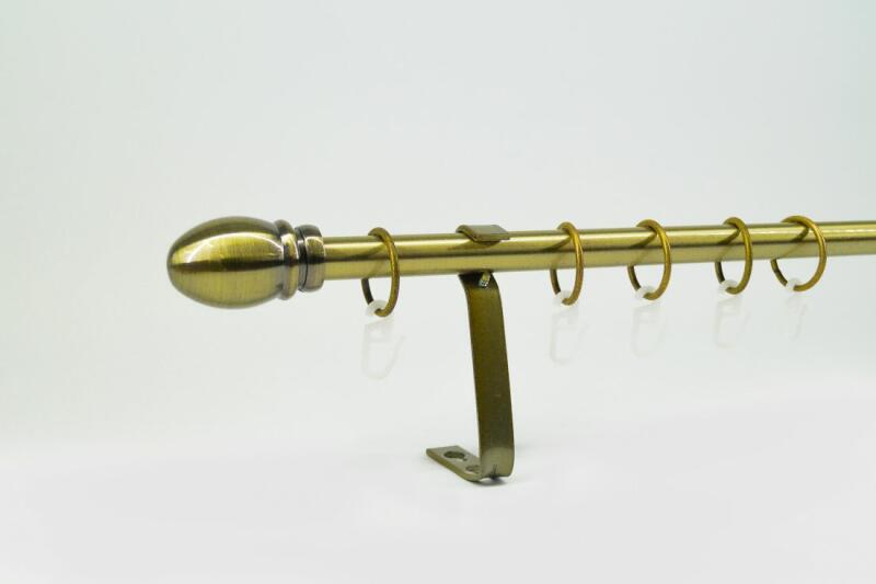 A függönykarnis szett tartalma: - 1 db óarany színű 16 mm Ø karnisrúd a választott méretben - 2 db óarany St. Louis függönykarnis végzáró (5 cm) - 2 db szimpla óarany lapostartó (8,5 cm) - óarany karikák és ráncszedő kampók (10 cm-ként 1 db) - a szereléshez szükséges csavarok és tiplik 240 cm karnishossz felett 3 db tartókonzolt tartalmaz a csomag. Webáruházunkban me