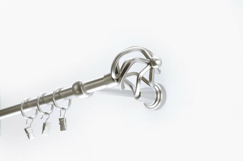 A függönykarnisszett tartalma: - 1 db nikkel-matt színű 25 mm Ø karnisrúd a választott méretben - 2 db nikkel-matt Wien függönykarnis végzáró ( 8 cm) - 2 db szimpla nikkel-matt nyitott tartókonzol (12-18 cm- állítható faltáv) - nikkel-matt karikák és ráncszedő kampók (10 cm-ként 1 db) - a szereléshez szükséges csavarok és tiplik 240 cm karnishossz felett 3 db tartókonz