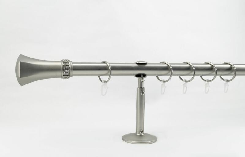 A függönykarnisszett tartalma: - 1 db nikkel-matt színű 25 mm Ø BORDÁS karnisrúd a választott méretben - 2 db nikkel-matt Innsbruck függönykarnis végzáró ( 7,5 cm) - 2 db szimpla nikkel-matt nyitott tartókonzol (12-18 cm- állítható faltáv) - nikkel-matt karikák és ráncszedő kampók (10 cm-ként 1 db) - a szereléshez szükséges csavarok és tiplik 240 cm karnishossz felett