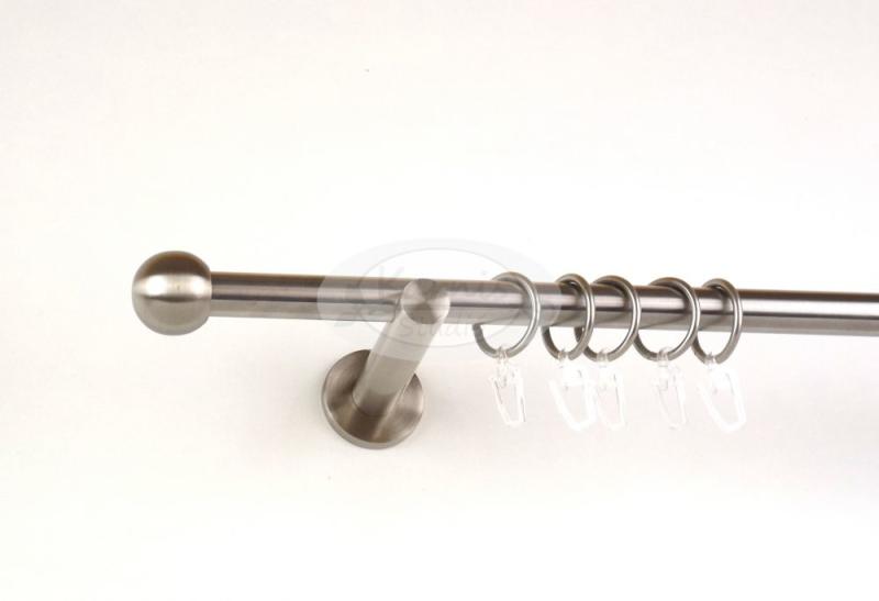Termék részletekA KANSAS 300 cm-es nikkel-matt színű 1 rudas fém karnis szett tartalma: 1 db 300 cm-es nikkel-matt színű 16 mm átmérőjű fém karnisrúd 2 db Kansas típusú nikkel-matt színű végzáró 3 db falra szerelhető fém konzol 30 db fém karika műanyag ráncszedő kampóval