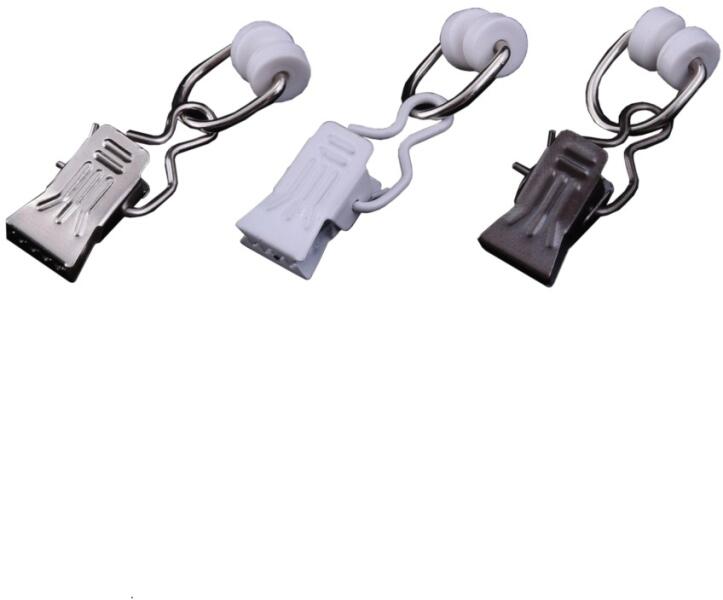 Fém függönycsipesz függönykarikára. Nappali- és sötétítőfüggönyök akasztására egyaránt alkalmas. A csomag tartalma: 10 db.