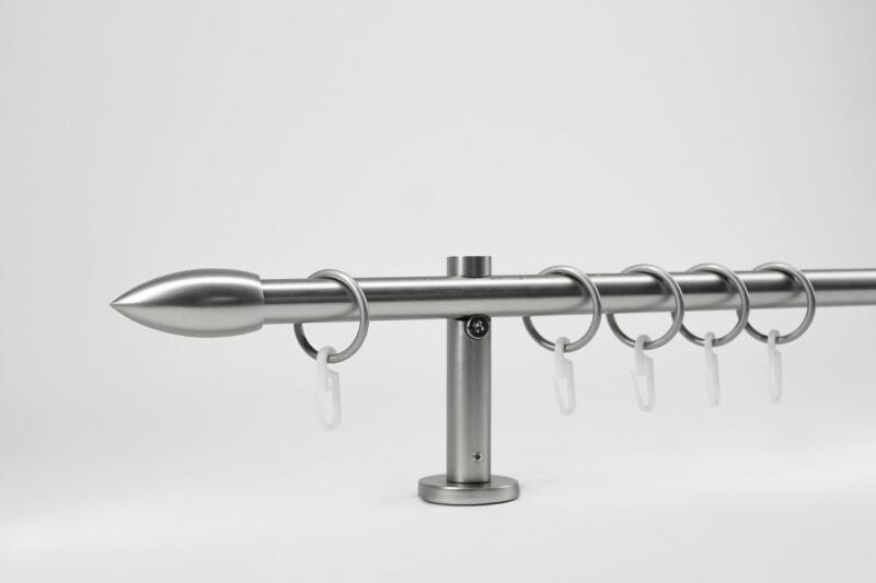 A függönykarnisszett tartalma: - 1 db nikkel-matt színű 25 mm Ø BORDÁS karnisrúd a választott méretben - 2 db nikkel-matt Graz függönykarnis végzáró ( 16 cm) - 2 db szimpla nikkel-matt nyitott tartókonzol (12-18 cm- állítható faltáv) - nikkel-matt karikák és ráncszedő kampók (10 cm-ként 1 db) - a szereléshez szükséges csavarok és tiplik 240 cm karnishossz felett 3 db t