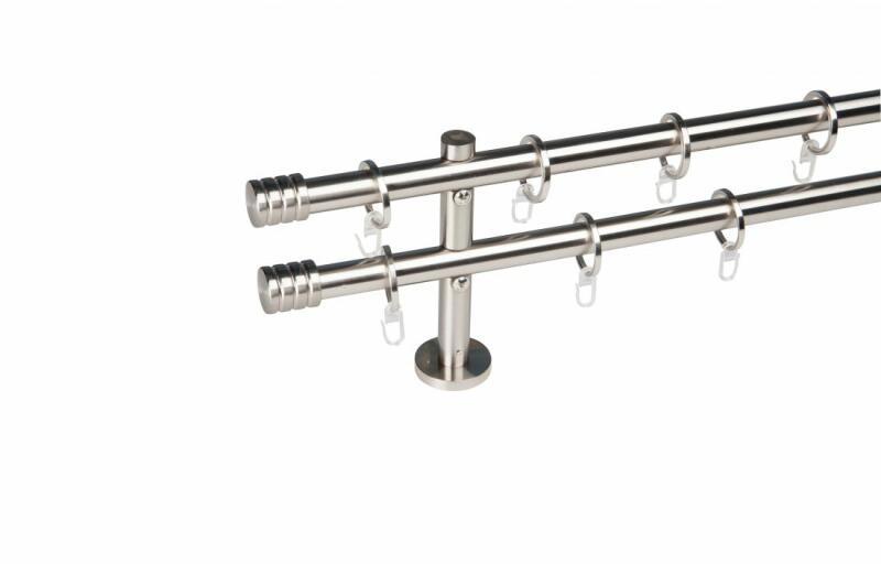 A szett tartalma: - 2 db nikkel-matt színű 16 mm Ø rúd a választott méretben - 2 db nikkel-matt San Marino végzáró (6,5 cm) - 2 db nikkel- matt Kansas végzáró (2 cm)- a hátsó rúdra - 2 db dupla nikkel-matt nyitott tartó (11,5/17,5 cm) - nikkel-matt karikák ráncszedőkampóval (rudanként, 10 cm-ként 1 db) - a szereléshez szükséges csavarok és tiplik 240 cm karnishossz felett