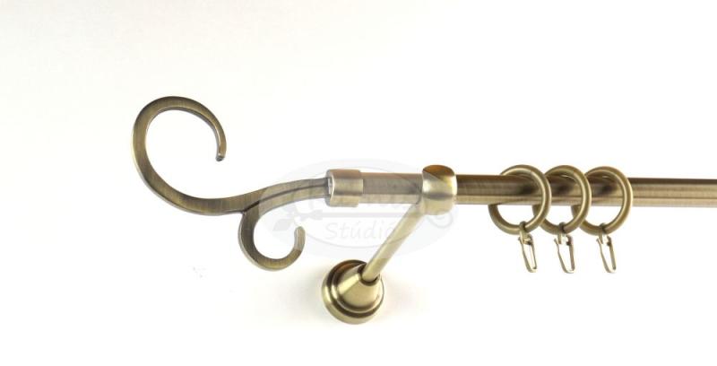 Az ORLANDO óarany színű 120 cm-es, 1 rudas fém karnis szett tartalma: 1 db 120 cm-es óarany színű, 16 mm átmérőjű fém karnisrúd 2 db Orlando típusú óarany színű fém karnis végzáró 2 db falra szerelhető fém konzol 12 db óarany színű műanyag függönykarika ráncszedő kampóval A 16 mm-es Amerika fém függönykarnis család tagjai a legnagyobb végzáró választékkal