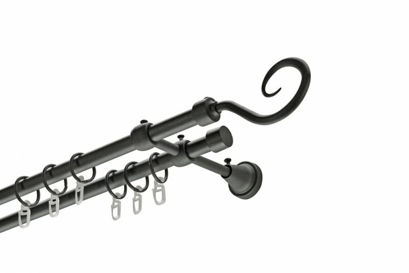 Horog kétsoros fém karnis szett fekete színű 300 cm . Vásárlás előtt kérem, figyelemmel olvassa el a szállítási opciókat! A szett tartalma: Fém karnis rúd 300 cm2 db. / csomagHorog fém végzáró2 db. / csomagRilló fém végzáró2 db. / csomagKétsoros fém tartó konzol2 db. / csomagFém karika24 db/ csomagMűanyag ráncszedő kampó24 db/ csomag A függönykarnis és tartozéka