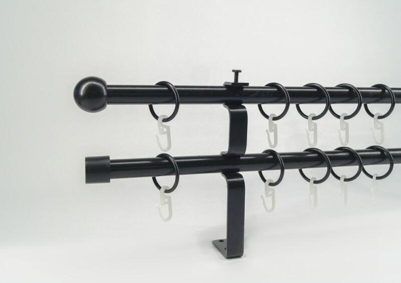 A szett tartalma: - 2 db fekete színű 16 mm Ø rúd a választott méretben - 2 db fekete Veszprém végzáró (2,5 cm) - 2 db fekete Kansas végzáró (2 cm)- a hátsó rúdra - 2 db dupla fekete lapostartó (8,5/14,5 cm) - fekete karikák és ráncszedő kampók (rudanként, 10 cm-ként 1 db) - a szereléshez szükséges csavarok és tiplik 240 cm karnishossz felett 3 db tartót tartalmaz a cs