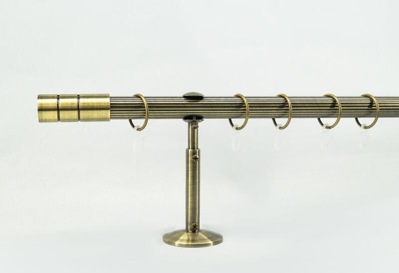 A függönykarnisszett tartalma: - 1 db óarany színű 25 mm Ø BORDÁS karnisrúd a választott méretben - 2 db óarany Innsbruck függönykarnis végzáró ( 7,5 cm) - 2 db szimpla óarany nyitott tartókonzol (12-18 cm- állítható faltáv) - óarany karikák és ráncszedő kampók (10 cm-ként 1 db) - a szereléshez szükséges csavarok és tiplik 240 cm karnishossz felett 3 db tartókonzo