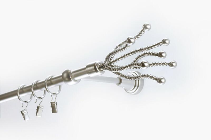 A függönykarnisszett tartalma: - 1 db nikkel-matt színű 25 mm Ø karnisrúd a választott méretben - 2 db nikkel-matt Wels függönykarnis végzáró ( 11 cm) - 2 db szimpla nikkel-matt nyitott tartókonzol (12-18 cm- állítható faltáv) - nikkel-matt karikák és ráncszedő kampók (10 cm-ként 1 db) - a szereléshez szükséges csavarok és tiplik 240 cm karnishossz felett 3 db tartókon