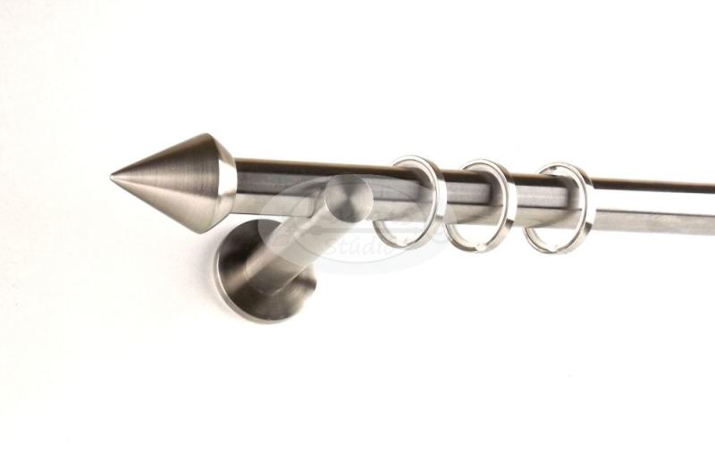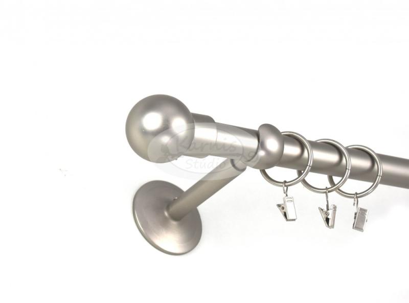 A SZEGED nikkel-matt színű 160 cm-es 1 rudas fém karnis szett tartalma: 1 db 160 cm-es nikkel-matt színű, 16 mm átmérőjű fém karnis rúd 2 db Szeged típusú nikkel-matt színű végzáró 2 db falra szerelhető fém konzol a felszereléshez szükséges tiplik és csavarok 16 db fém karika műanyag ráncszedő kampóval
