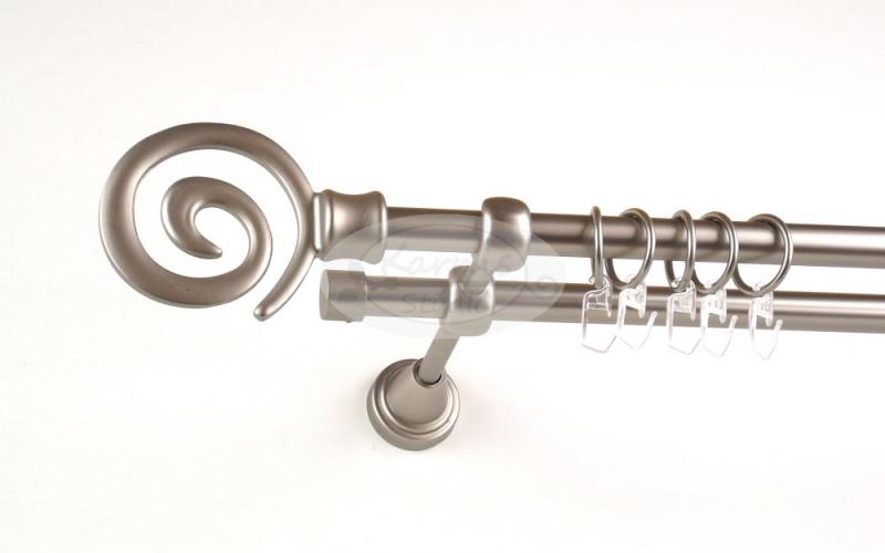 Termék részletekA HOUSTON 120 cm-es nikkel-matt színű 2 rudas fém karnis szett tartalma: 2 db 120 cm-es nikkel-matt színű 16 mm átmérőjű fém karnisrúd 2 db Houston típusú nikkel-matt színű fém karnis végzáró 2 db Kansas típusú, kupak formájú fém karnis végzáró 2 db falra szerelhető fém konzol 24 db fém karika műanyag ráncszedő kampóval A 16 mm-es Amerika fém függönykarnis csal