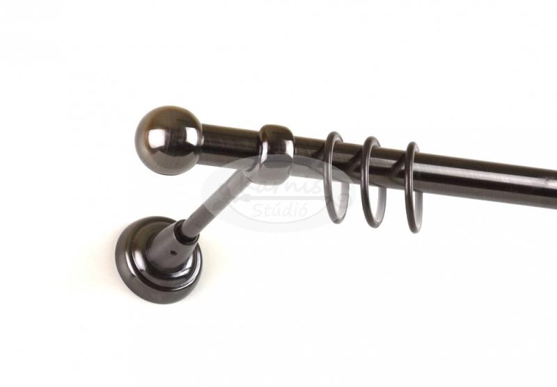 Termék részletekA TATA fekete 120 cm-es, 2 rudas, modern tartós fém karnis szett tartalma: 2 db 120 cm-es fekete színű, 16 mm átmérőjű fém karnisrúd 2 db Tata típusú fekete fém végzáró 2 db Veszprém típusú kis gömb végzáró 2 db falra szerelhető fém konzol 24 db fekete műanyag függönykarika ráncszedő kampóval A 16 mm-es Pannónia függönykarnis család fekete fém karnisai már mode