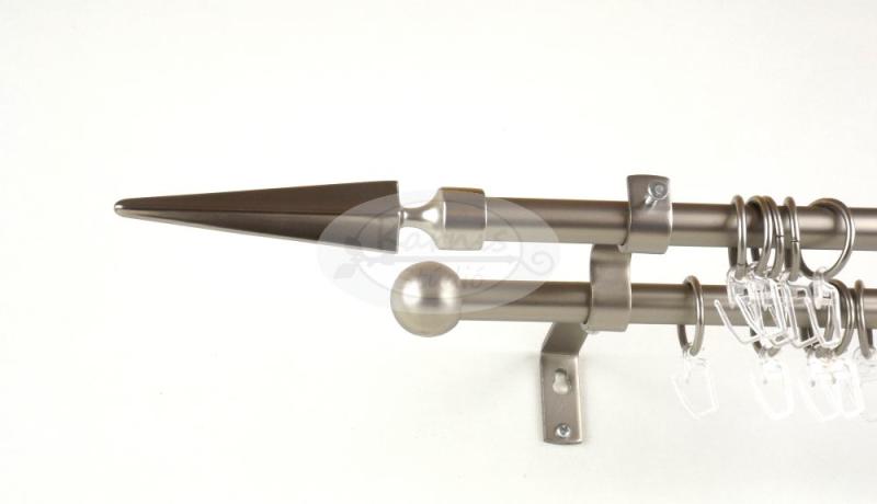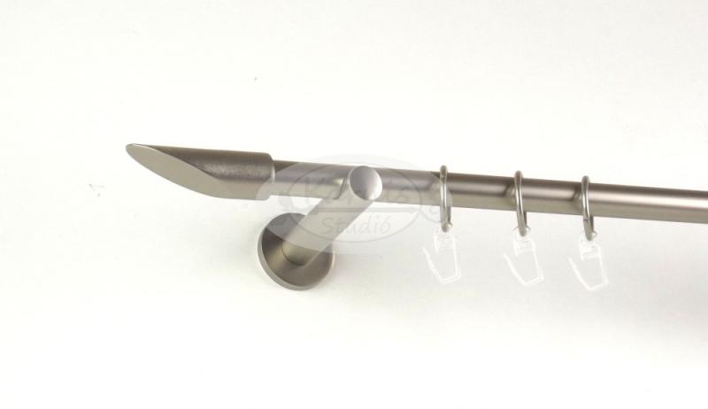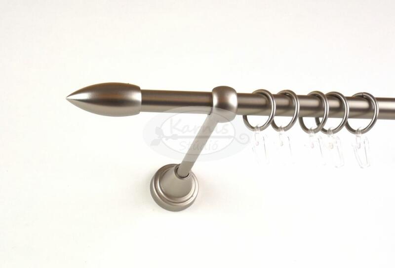 Termék részletekA KESZTHELY nikkel-matt színű 120 cm-es 2 rudas fém karnis szett tartalma: 2 db nikkel-matt színű 120 cm-es fém karnisrúd 2 db Keszthely típusú nikkel-matt színű végzáró 2 db Veszprém típusú kis gömb végzáró 2 db falra szerelhető fém konzol 24 db fém karika műanyag ráncszedő kampóval a felszereléshez szükséges tiplik és csavarok A 16 mm-es Pannónia fém függönyka