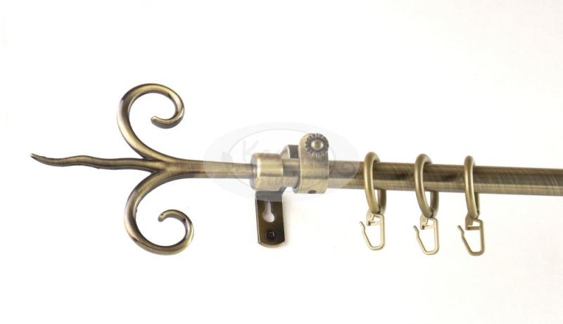 Termék részletekA KANSAS óarany színű 300 cm-es, 1 rudas fém karnis szett tartalma: 1 db 300 cm-es óarany színű, 16 mm átmérőjű fém karnisrúd 2 db Kansas típusú óarany színű fém karnis végzáró 3 db falra szerelhető fém konzol 30 db óarany színű műanyag függönykarika ráncszedő kampóval