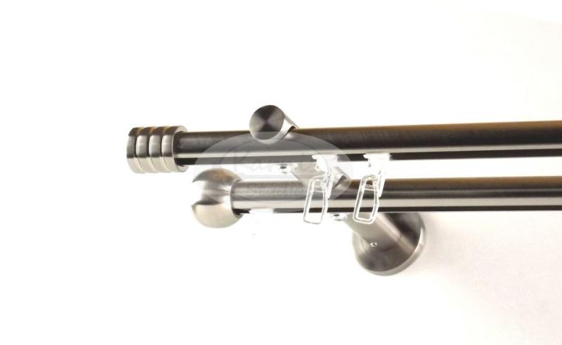 Termék részletekAz AMSTERDAM 2 rudas, 320 cm-es, inox színű fém karnis szett tartalma: 4 db 160 cm-es fényes inox színű fém karnisrúd 2 db toldó elem 2 db Amsterdam fém karnis végzáró 2 db Varsó (kis kupak formájú) fém karnis végzáró 3 db falra szerelhető fém konzol 64 db fém függönykarika műanyag ráncszedő kampóval