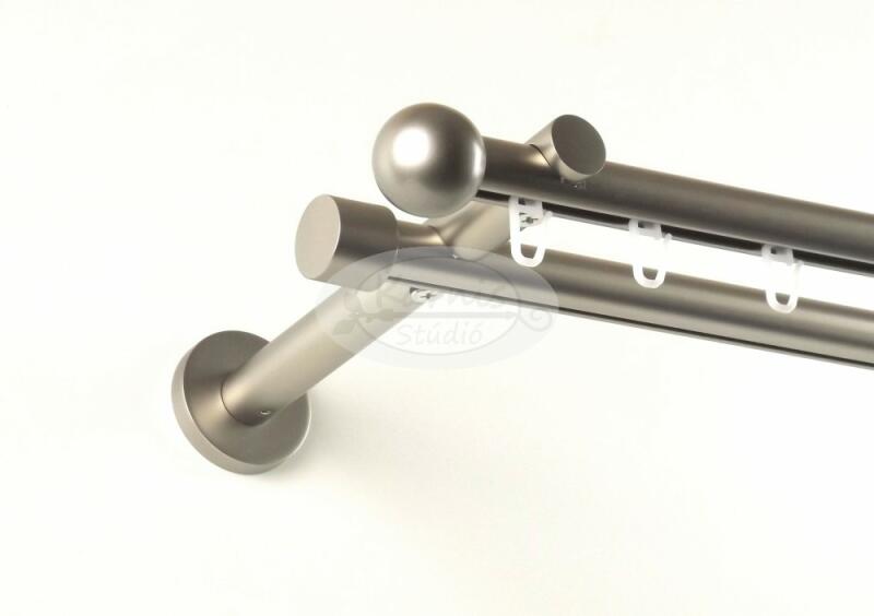 Termék részletekA KESZTHELY 240 cm-es nikkel-matt színű 2 rudas fém karnis szett tartalma: 2 db 240 cm-es nikkel-matt színű 16 mm átmérőjű fém karnisrúd 2 db Keszthely típusú nikkel-matt színű fém karnis végzáró 2 db Veszprém típusú, kis gömb formájú fém karnis végzáró 3 db falra szerelhető, modern fém konzol 48 db fém karika műanyag ráncszedő kampóval