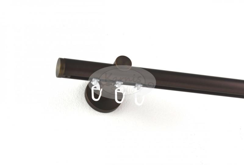 A kupak végzárós bronz színű 1 rudas, belső sínes 25 mm átmérőjű fém karnis szett tartalma: 1 db bronz színű belső sínes fém karnisrúd a kiválasztott hosszúságban 2 db kupak formájú, bronz színű fém karnis végzáró (hossza: 6 mm) bronz színű modern fém karnis tartó konzolok (200 cm-ig 2 db, 240 cm-es hossztól 3 db, a 400 cm hosszú karnishoz 4 db) a felszereléshez