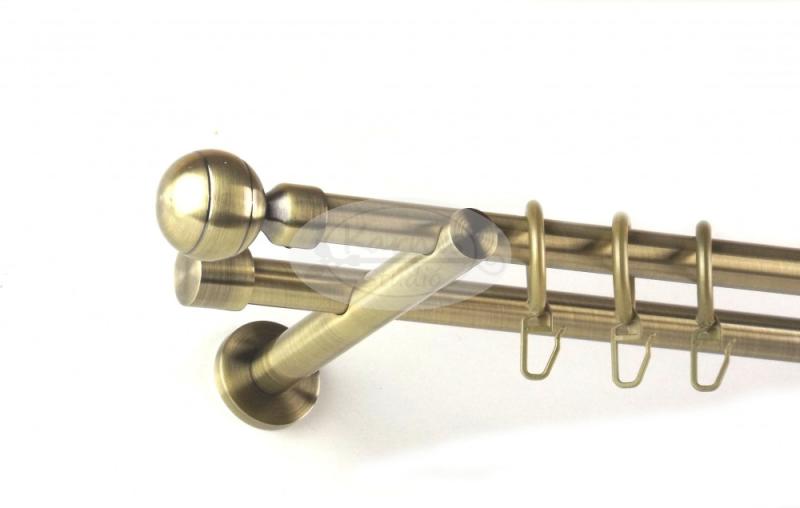 A NEW ORLEANS óarany színű, 120 cm-es, 2 rudas, modern tartós fém karnis szett tartalma: 2 db 120 cm-es óarany fém karnisrúd 2 db New Orleans típusú óarany színű fém végzáró 2 db Kansas típusú kis kupak végzáró 2 db falra szerelhető modern fém konzol 24 db óarany színű műanyag karika ráncszedő kampóval A Karnis Stúdió által kínált függönykarnis rudak fix mére