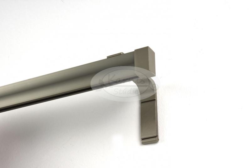 A MEMPHIS 300 cm-es nikkel-matt színű 2 rudas fém karnis szett tartalma: 2 db 300 cm-es nikkel-matt színű 16 mm átmérőjű fém karnisrúd 2 db Memphis típusú nikkel-matt színű fém karnis végzáró 2 db Kansas típusú, kis kupak formájú fém karnis végzáró 3 db falra szerelhető, modern fém konzol 60 db fém karika műanyag ráncszedő kampóval