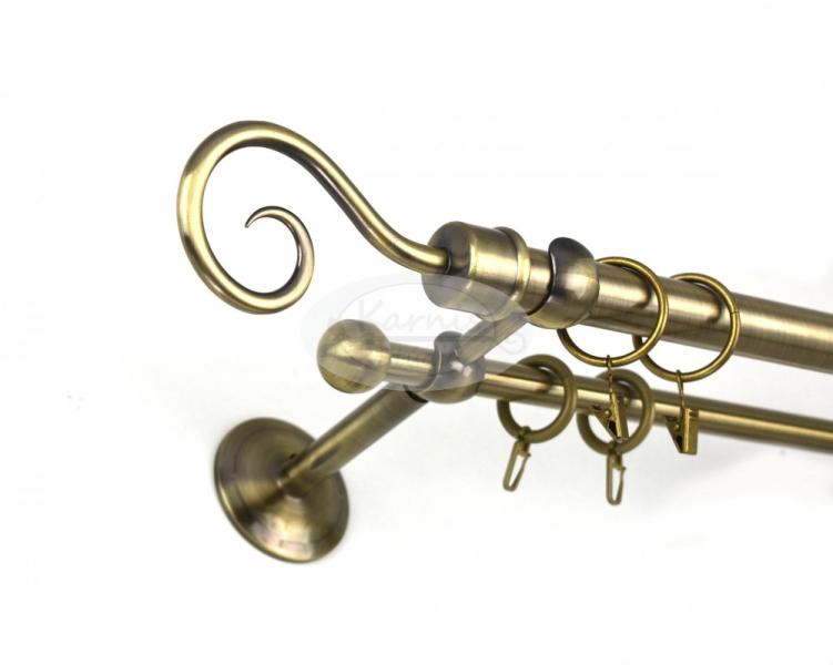 A KESZTHELY nikkel-matt színű 320 cm-es 2 rudas fém karnis szett tartalma: 4 db nikkel-matt színű 160 cm-es fém karnisrúd 2 db toldó elem 2 db Keszthely típusú nikkel-matt színű végzáró 2 db Veszprém típusú kis gömb végzáró 2 db falra szerelhető fém konzol 64 db fém karika műanyag ráncszedő kampóval a felszereléshez szükséges tiplik és csavarok