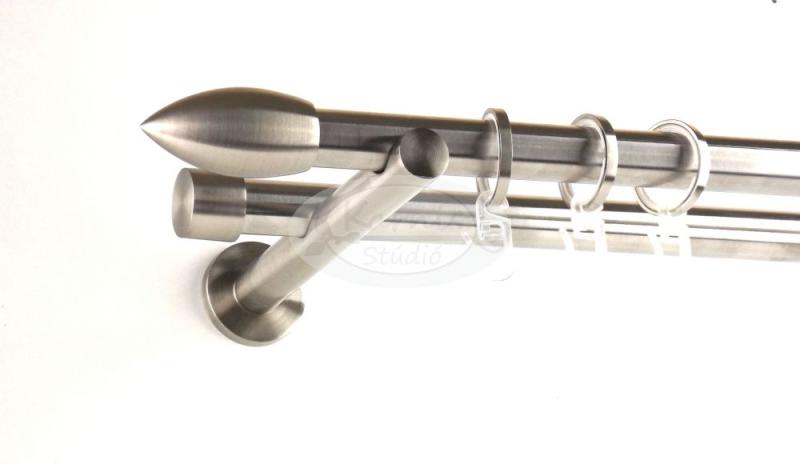 Termék részletekA ROUEN 2 rudas, 120 cm-es fém karnis szett tartalma: 2 db 19 mm átmérőjű, 120 cm hosszú fém karnisrúd (fényes inox színben) 2 db Rouen típusú fém karnis végzáró 2 db Nantes típusú fém karnis végzáró 2 db falra szerelhető fém konzol 24 db szilikon betétes fém karika (ún. csöndesgyűrű) ráncszedő kampóval A 19 mm-es France Prémium függönykarnis család tagjai - ah