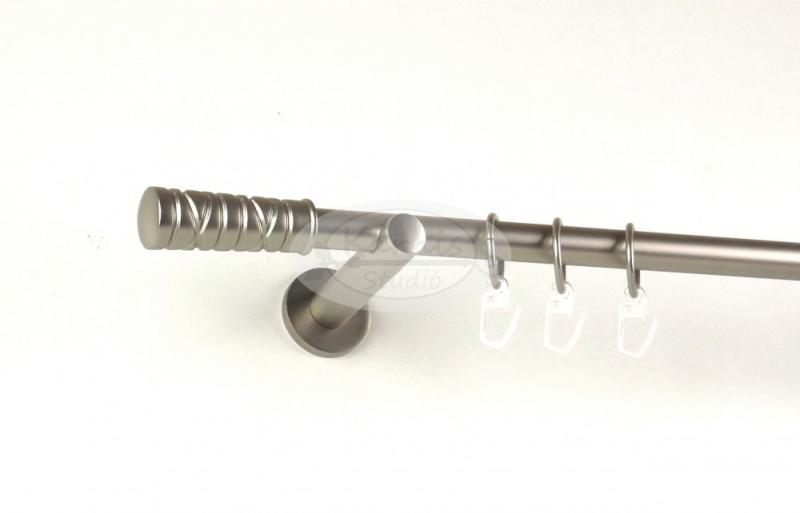 Termék részletekA MIAMI 120 cm-es nikkel-matt színű 1 rudas, modern tartós fém karnis szett tartalma: 1 db 120 cm-es nikkel-matt színű 16 mm átmérőjű fém karnisrúd 2 db Miami típusú nikkel-matt színű végzáró 2 db falra szerelhető modern fém konzol 12 db fém karika műanyag ráncszedő kampóval A Karnis Stúdió által kínált függönykarnis rudak fix méretűek, de egyszerűen (egy fém f
