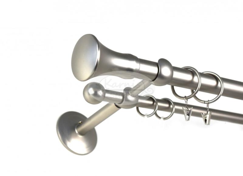 Termék részletekA NICKELSDORF nikkel-matt 2 rudas karnis szett tartalma: 1 db nikkel-matt színű 25 mm átmérőjű fém karnisrúd a kiválasztott hosszúságban 1 db nikkel-matt színű 16 mm átmérőjű fém karnisrúd a kiválasztott hosszúságban 2 db Nickelsdorf típusú nikkel-matt fém karnis végzáró 2 db Veszprém típusú nikkel-matt színű fém kis gömb végzáró 2 db falra szerelhető fém ka
