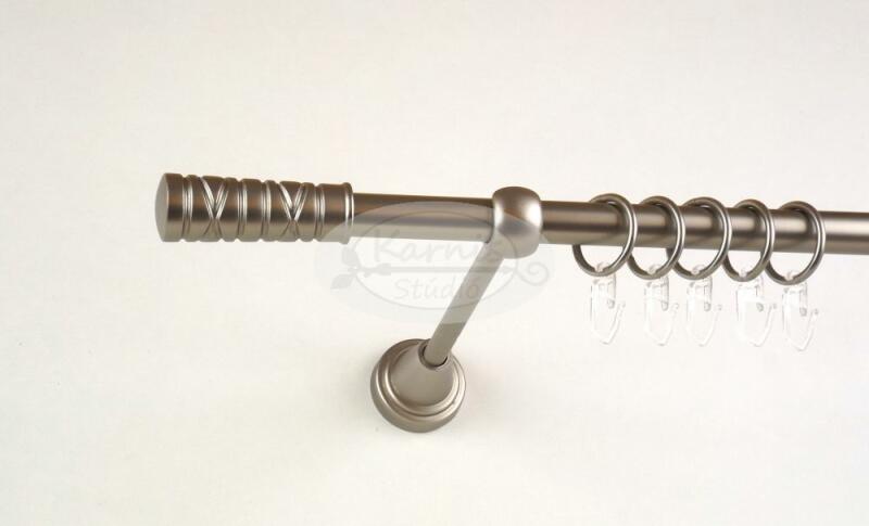 Termék részletekA KESZTHELY nikkel-matt színű 300 cm-es 1 rudas fém karnis szett tartalma: 1 db 300 cm-es nikkel-matt színű 16 mm átmérőjű fém karnisrúd 2 db Keszthely típusú nikkel-matt színű végzáró 3 db falra szerelhető fém konzol a felszereléshez szükséges tiplik és csavarok 30 db fém karika műanyag ráncszedő kampóval