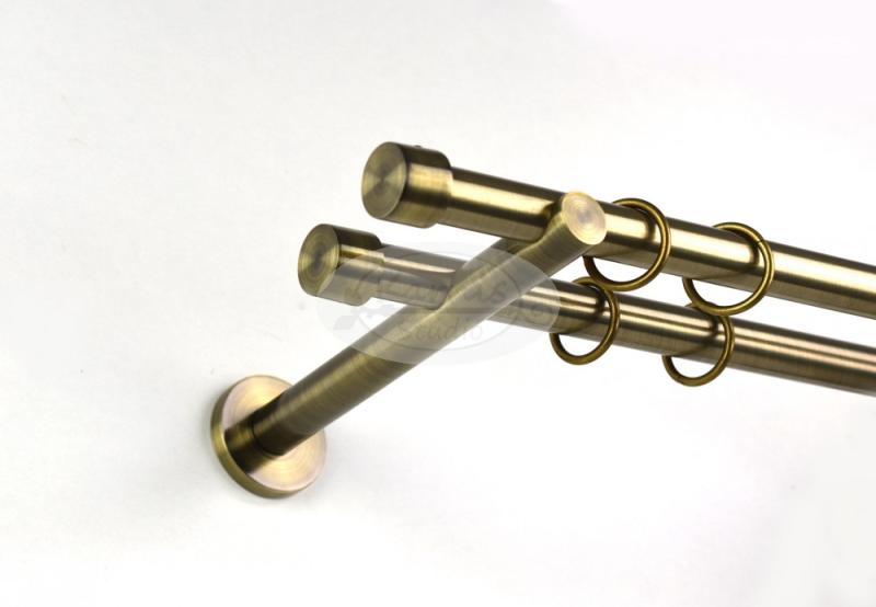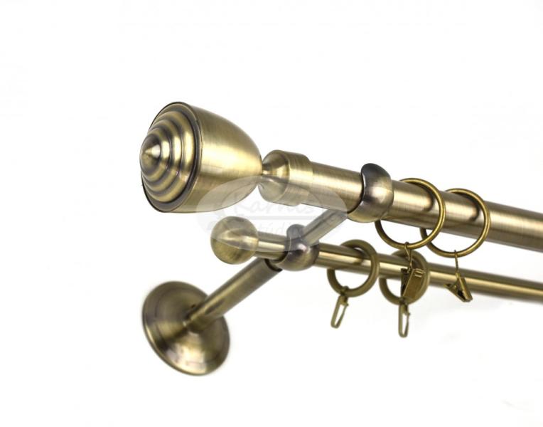 A SALZBURG óarany 2 rudas karnis szett tartalma: 1 db óarany színű 25 mm átmérőjű fém karnisrúd a kiválasztott hosszúságban 1 db óarany színű 16 mm átmérőjű fém karnisrúd a kiválasztott hosszúságban 2 db Salzburg típusú óarany fém végzáró 2 db Veszprém típusú óarany színű fém kis gömb végzáró 2 db falra szerelhető fém konzol a felszereléshez szüksége