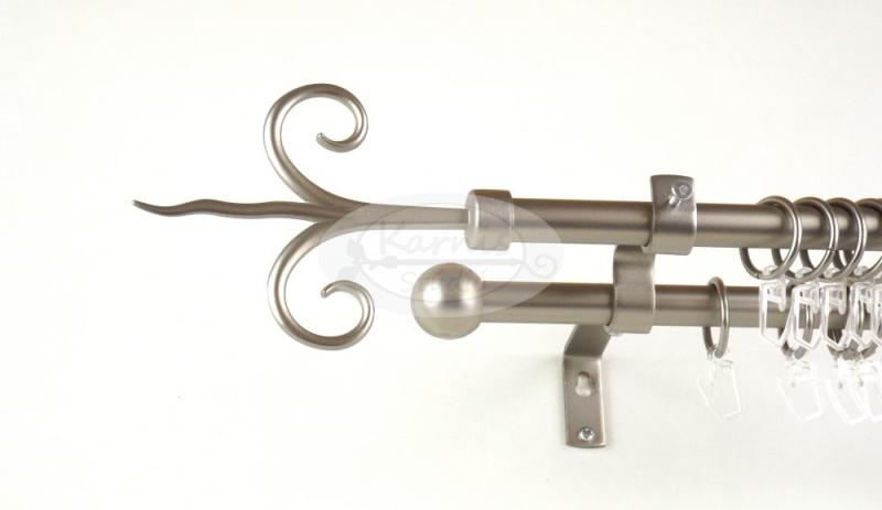 Termék részletekA KECSKEMÉT nikkel-matt színű 120 cm-es 2 rudas fém karnis szett tartalma: 2 db 120 cm-es nikkel-matt színű, 16 mm átmérőjű fém karnisrúd 2 db Kecskemét típusú nikkel-matt színű végzáró 2 db Veszprém típusú kis gömb végzáró 2 db falra szerelhető fém konzol 24 db fém függönykarika műanyag ráncszedő kampóval a felszereléshez szükséges tiplik és csavarok A 16 m
