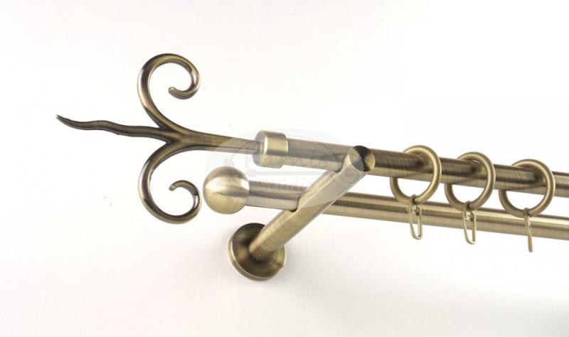 Termék részletekA VESZPRÉM 240 cm-es óarany színű 2 rudas fém karnis szett tartalma: 2 db 240 cm-es óarany színű, 16 mm átmérőjű fém karnisrúd 4 db Veszprém típusú óarany színű fém végzáró 3 db falra szerelhető fém konzol 48 db óarany színű műanyag karika ráncszedő kampóval