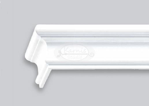 Termék részletekBarock 2 sínes fehér színű előlapos fa karnis MENNYEZETRE Anyaga: fa Színe: fehér (vagy kiválasztható a listából) A fa előlap magassága 70 mm, vastagsága: 32 mm a legszélesebb pontján A 2 soros sín méretei: 120 mm széles, 16 mm magas A (fotón is látható) szett tartalma: - fa előlapos karnis a kiválasztott hosszban két végén lezárással (de enélkül is kérhető, ha pl.