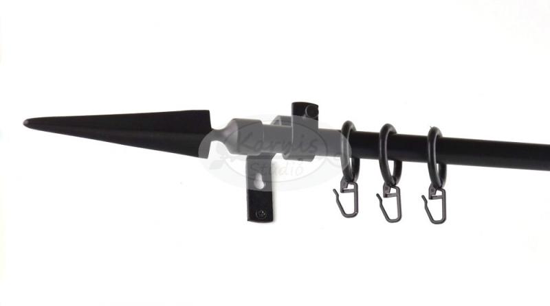 FIGYELEM! KIFUTÓ TERMÉK! ALACSONY KÉSZLET! A KESZTHELY fekete 120 cm-es 1 rudas fém karnis szett tartalma: 1 db 120 cm-es fekete fém karnisrúd 2 db Keszthely típusú fekete fém végzáró 2 db falra szerelhető fém konzol a felszereléshez szükséges tiplik és csavarok 12 db fekete műanyag karika fekete színű ráncszedő kampóval A 16 mm-es Pannónia fém függönykarnis család tag