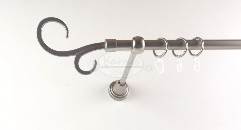 Termék részletekA DETROIT 200 cm-es nikkel-matt színű 1 rudas, modern tartós fém karnis szett tartalma: 1 db 200 cm-es nikkel-matt színű 16 mm átmérőjű fém karnisrúd 2 db Detroit típusú nikkel-matt színű végzáró 2 db falra szerelhető modern fém konzol 20 db fém karika műanyag ráncszedő kampóval