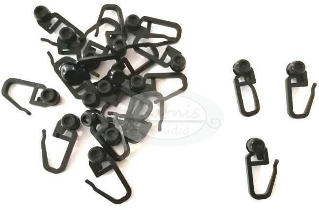 Termék részletekFekete műanyag görgős ráncszedő kampó mennyezeti sínhez (20 db/cs. ) A görgős ráncszedő kampót behúzó szalaggal varrt függönyökhöz tudjuk használni. A webáruházban megvásárolható műanyag mennyezeti sínek tartozékcsomagában ilyen kampók találhatól. Segítség a szükséges mennyiség kiszámításához: Általában a sín hosszának megfelelően 10 cm-ként 1 db csipe