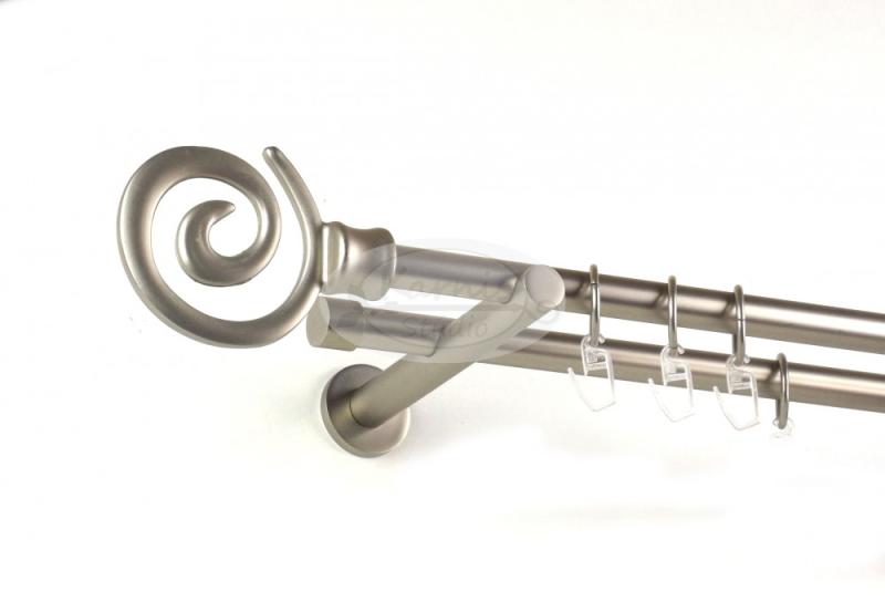 Termék részletekA LOS ANGELES 300 cm-es nikkel-matt színű 2 rudas fém karnis szett tartalma: 2 db 300 cm-es nikkel-matt színű 16 mm átmérőjű fém karnisrúd 2 db Los Angeles típusú nikkel-matt színű fém karnis végzáró 2 db Kansas típusú, kupak formájú fém karnis végzáró 3 db falra szerelhető fém konzol 60 db fém karika műanyag ráncszedő kampóval