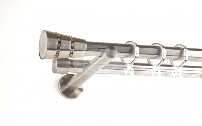 Termék részletekA PROVINS 2 rudas, 120 cm-es fém karnis szett tartalma: 2 db 19 mm átmérőjű, 120 cm hosszú fém karnisrúd (fényes inox színben) 2 db Provins, strasszkövekkel díszített fém karnis végzáró 2 db Nantes típusú fém karnis végzáró 2 db falra szerelhető fém konzol 24 db szilikon betétes fém karika (ún. csöndesgyűrű) ráncszedő kampóval A 19 mm-es France Prémium függönyk