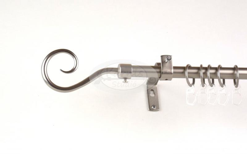 A SZOLNOK nikkel-matt színű 160 cm-es 1 rudas fém karnis szett tartalma: 1 db 160 cm-es nikkel-matt színű, 16 mm átméeőjű fém karnisrúd 2 db Szolnok típusú nikkel-matt színű végzáró 2 db falra szerelhető fém konzol a felszereléshez szükséges tiplik és csavarok 16 db fém karika műanyag ráncszedő kampóval