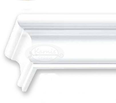 Barock 1 sínes fehér színű előlapos fa karnis MENNYEZETRE Anyaga: fa Színe: fehér A fa előlap magassága 70 mm, vastagsága: 32 mm a legszélesebb pontján Az 1 soros sín méretei: 80 mm széles, 16 mm magas A (fotón is látható) szett tartalma: - fa előlapos karnis a kiválasztott hosszban két végén lezárással (de enélkül is kérhető, ha pl. két fal közé kerül a karnis) -