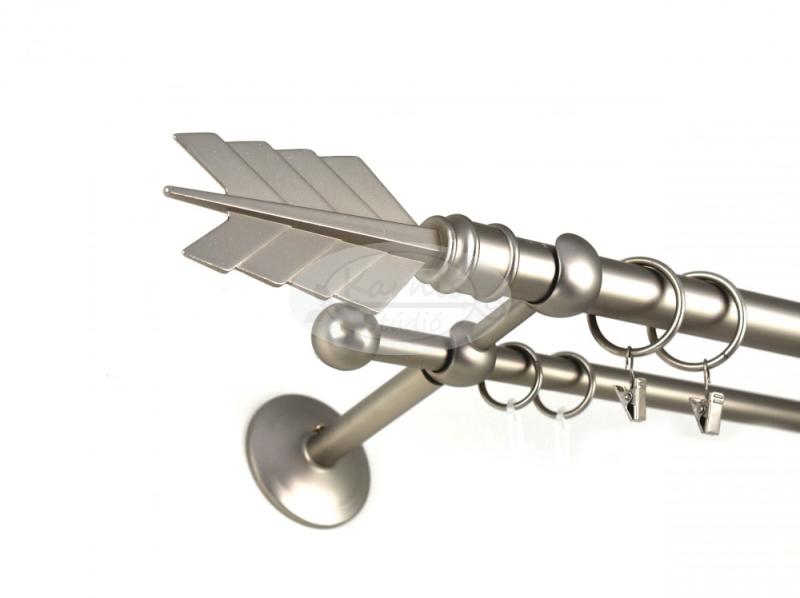 A KECSKEMÉT nikkel-matt színű 160 cm-es 2 rudas fém karnis szett tartalma: 2 db 160 cm-es nikkel-matt színű, 16 mm átmérőjű fém karnisrúd 2 db Kecskemét típusú nikkel-matt színű végzáró 2 db Veszprém típusú kis gömb végzáró 2 db falra szerelhető fém konzol 32 db fém függönykarika műanyag ráncszedő kampóval a felszereléshez szükséges tiplik és csavarok