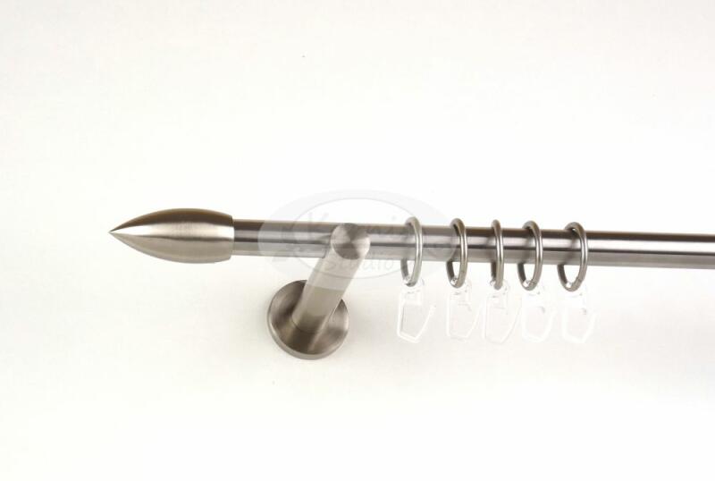 A LOS ANGELES 240 cm-es nikkel-matt színű 1 rudas fém karnis szett tartalma: 1 db 240 cm-es nikkel-matt színű 16 mm átmérőjű fém karnisrúd 2 db Los Angeles típusú nikkel-matt színű végzáró 3 db falra szerelhető fém konzol 24 db fém karika műanyag ráncszedő kampóval