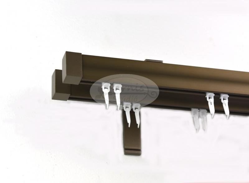 Novum 2 sínes alumínium profilkarnis MATT-BRONZ színben tartozékokkal együtt A profil két oldala közül bármelyik használható: a hullám formájú és a bordás is. A karnis profil mérete: kb. 35 mm magas, 15 mm széles A tartók hossza: kb. 11 cm. (Ugyanaz a tartó használandó az 1 és a 2 sínes karnishoz is!) Hosszabb tartóval is rendelhető ( https://karnisstudio. hu/Novum-2-sine